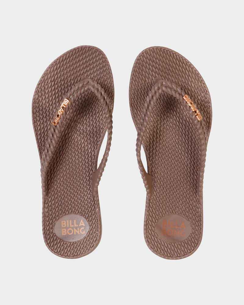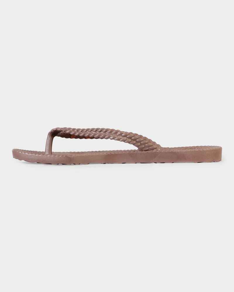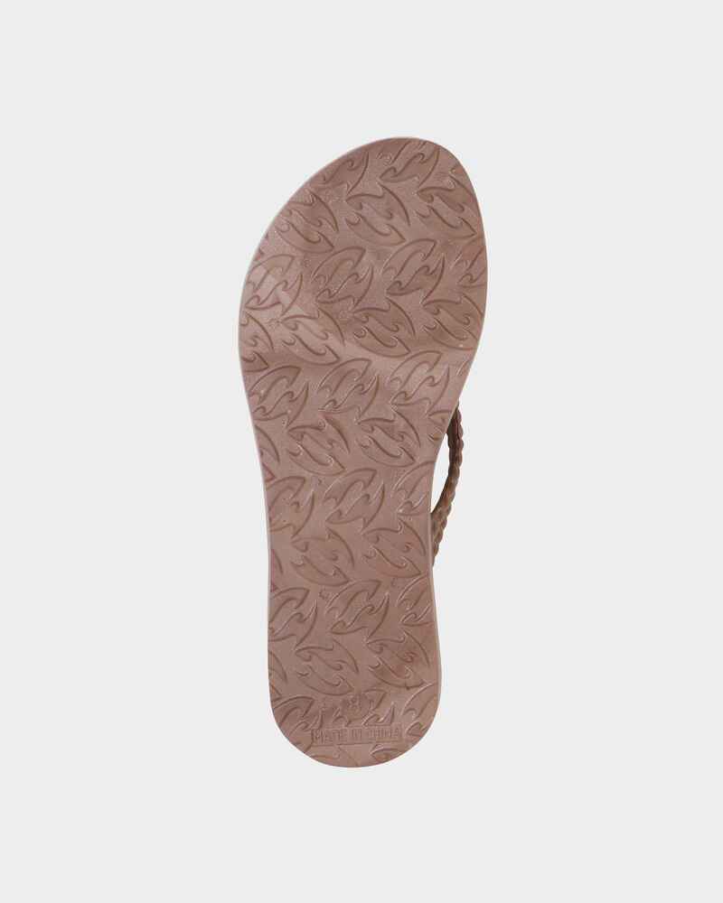 Easy slip on thong style with textured footbed and strap. Featuring a metal logo badge and logo heel print.