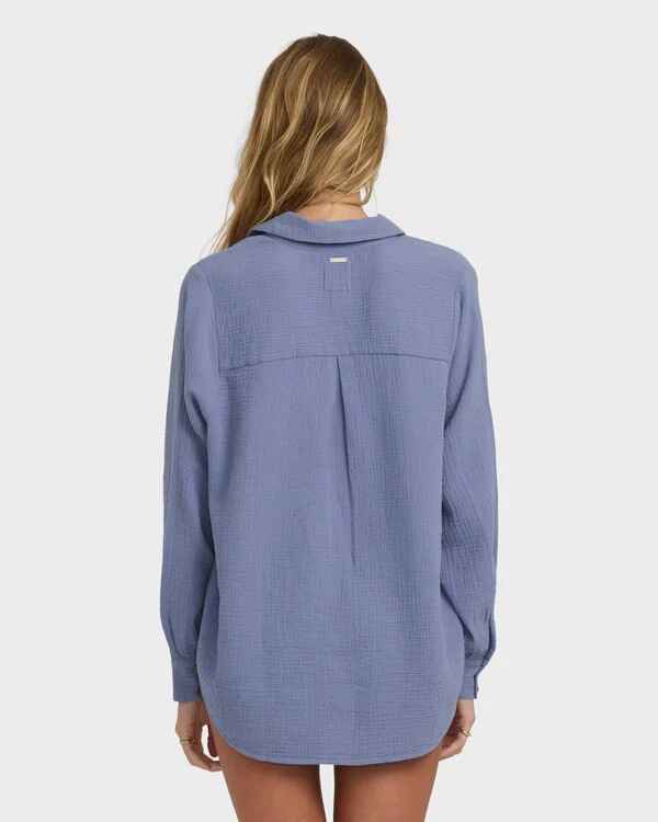 BILLABONG LADIES SWEET SWELL L/S BLOUSE - STONE BLUE