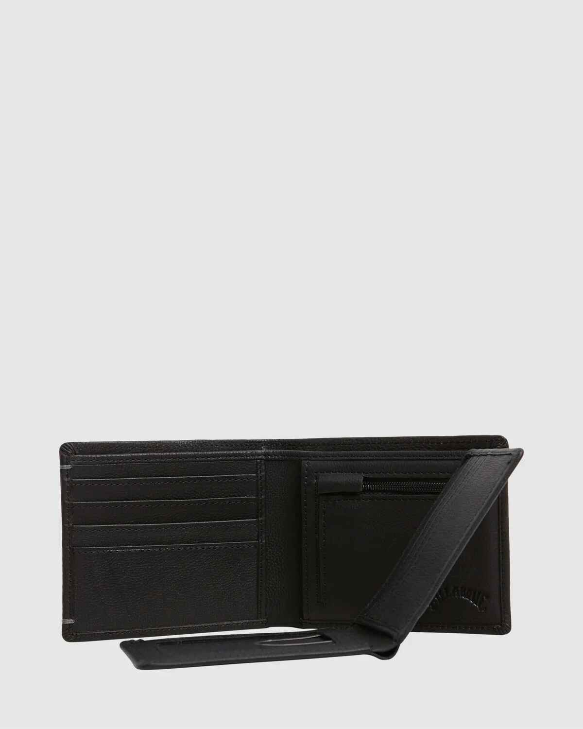 BILLABONG MENS ROCKAWAY 2 IN 1 LEATHER WALLET - BLACK