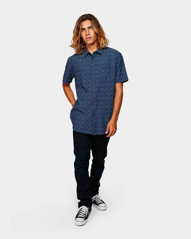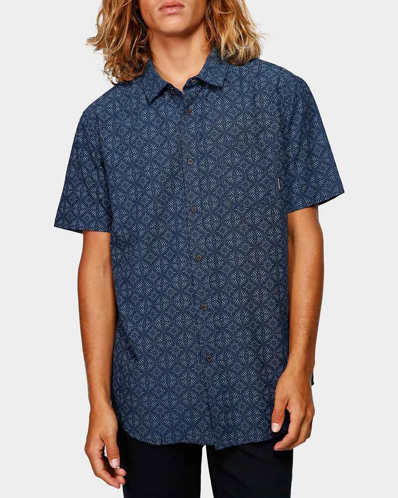 BILLABONG MENS SUNDAYS FLORAL RAYON DRESS SHIRT - NAVY