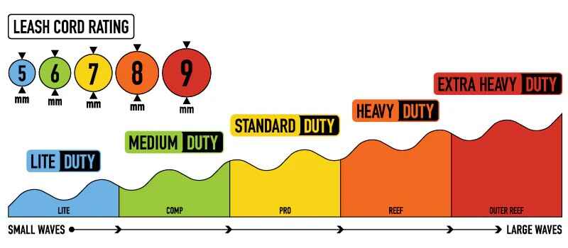 This is a STANDARD DUTY 7mm cord. All-round leash rated for MEDIUM to LARGE WAVES.