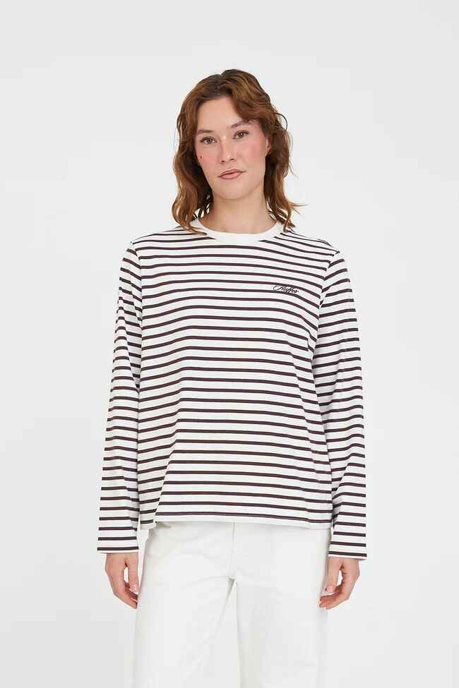 HUFFER LADIES OUI OUI L/S RELAX TEE - CHESTNUT / CHALK