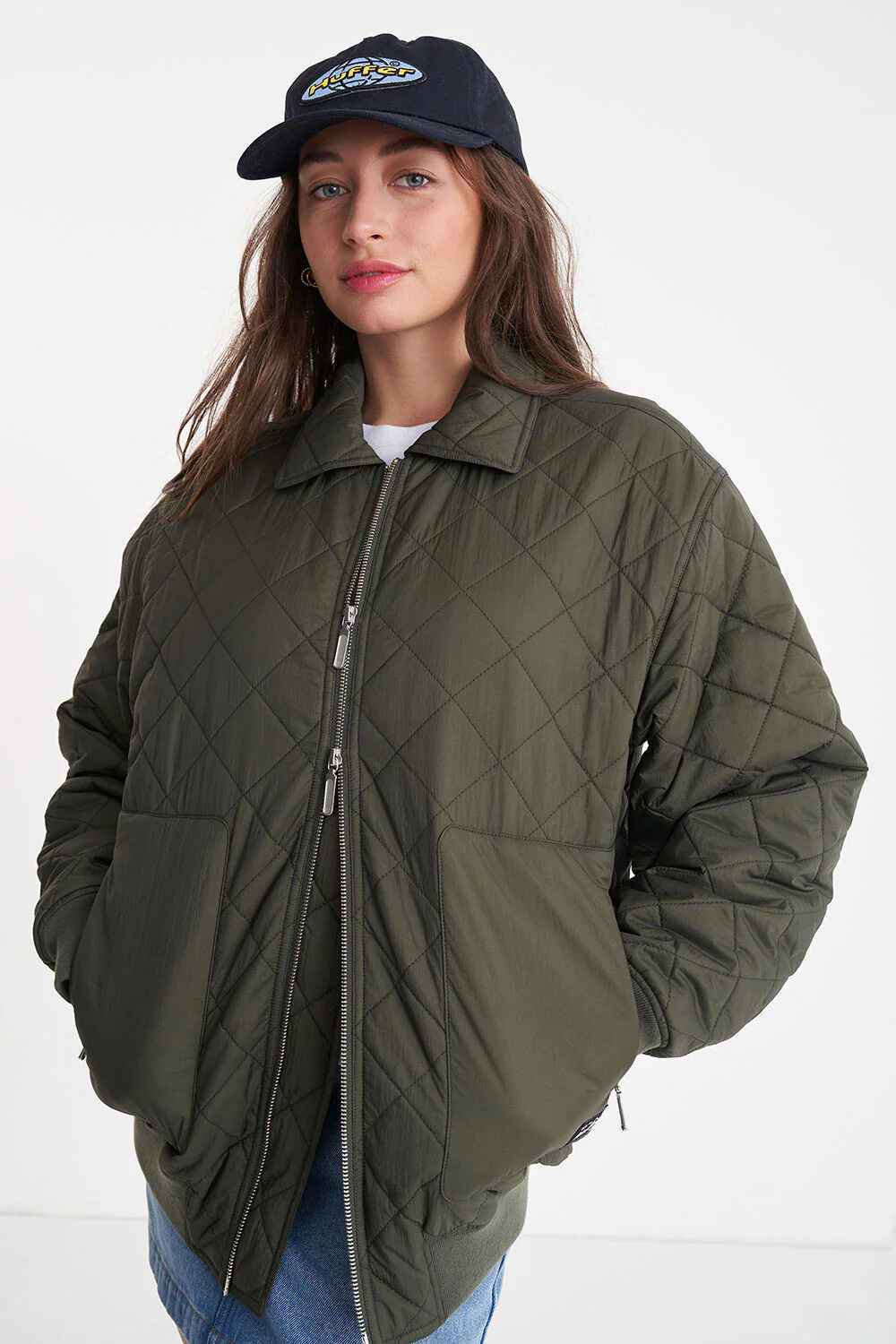 HUFFER LADIES QUILTED LONGLINE BOMBER - CYPRESS