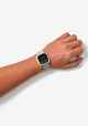 An aesthetic throwback to a time when a digital display was the peak of technology. The angled case and silicone over-molded pushers are nods to 1980’s design cues.