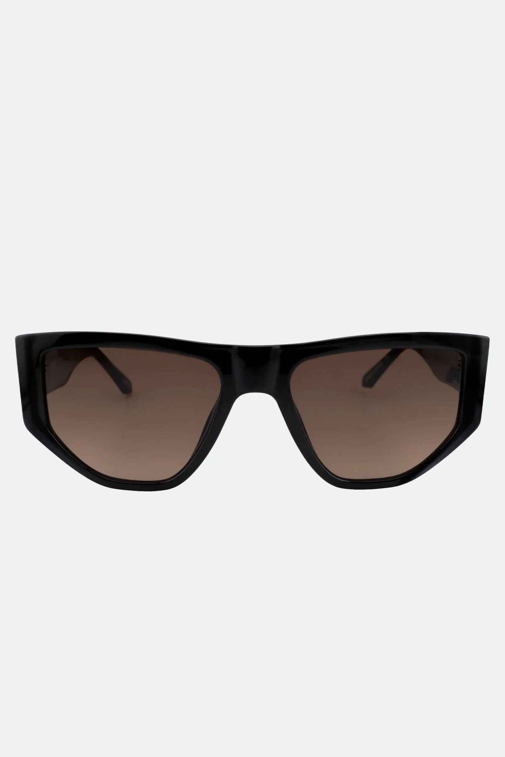 Otra Elka sunnie is our oversized squared off dark chocolate cateye frame with brown fade lens.