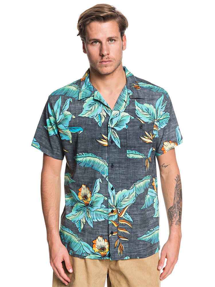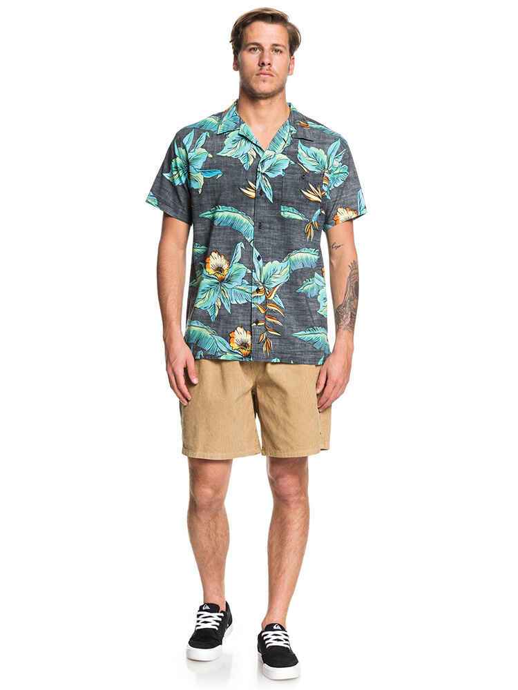 Made with a cotton viscose blend fabric, and a camp shirt fit. Complete with a regular button closure. This short sleeve shirt for men joins the line-up in the Quiksilver apparel collection.
