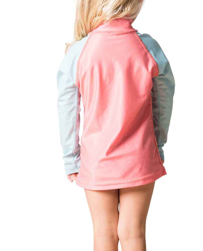 The Mini Palms Long Sleeve is a great long sleeve rash shirt for little girls, made of a durable and soft chlorine friendly poly elastane material and cut to a performance fit.