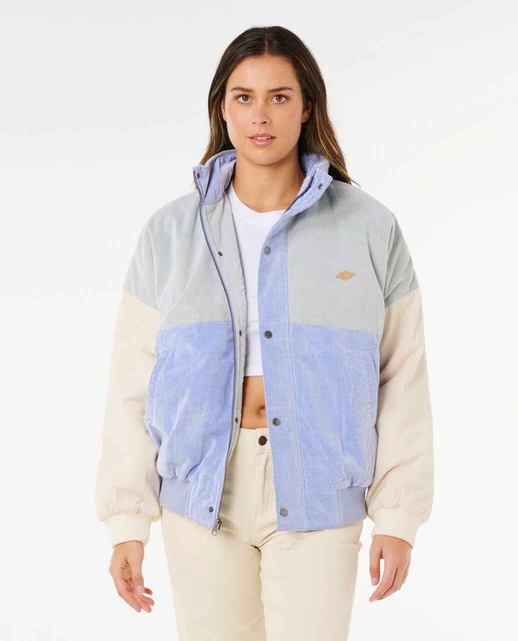 The Cala Vadella Jacket brings retro vibes with colour-blocked cotton corduroy, a nylon zipper closure, and button-through style. A laid-back essential for cooler coastal days.Colour