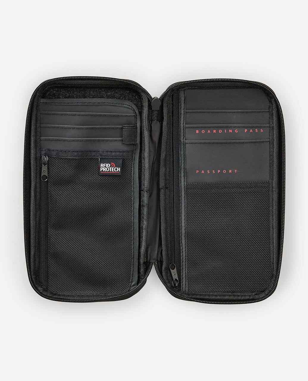 RFID protection and multiple card slots make the F-Light Search Travel Wallet a surf-ready essential, finished with a zip coin pocket and document sleeve for secure travel.