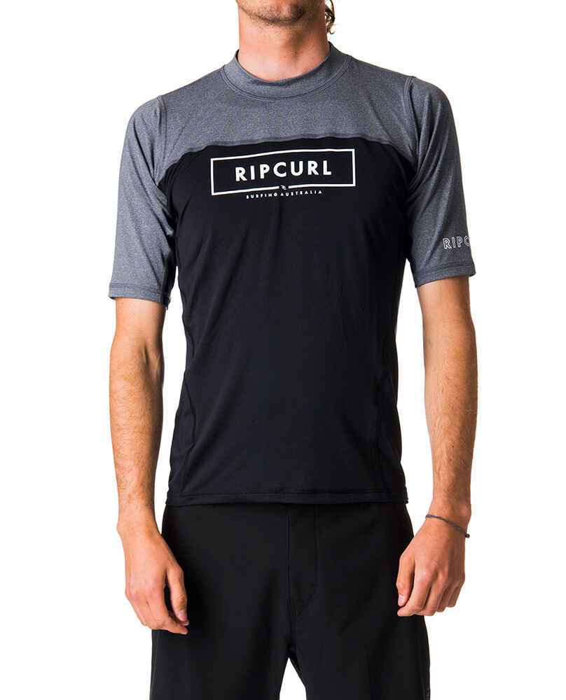 RIPCURL MENS UNDERLINE RELAXED S/S RASHSHIRT - BLACK