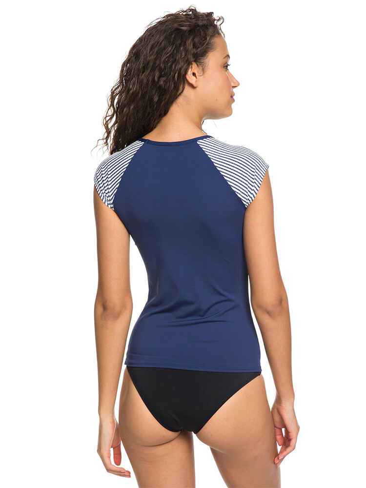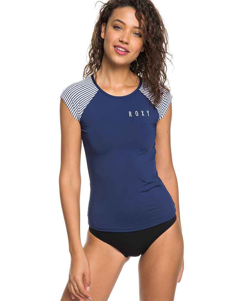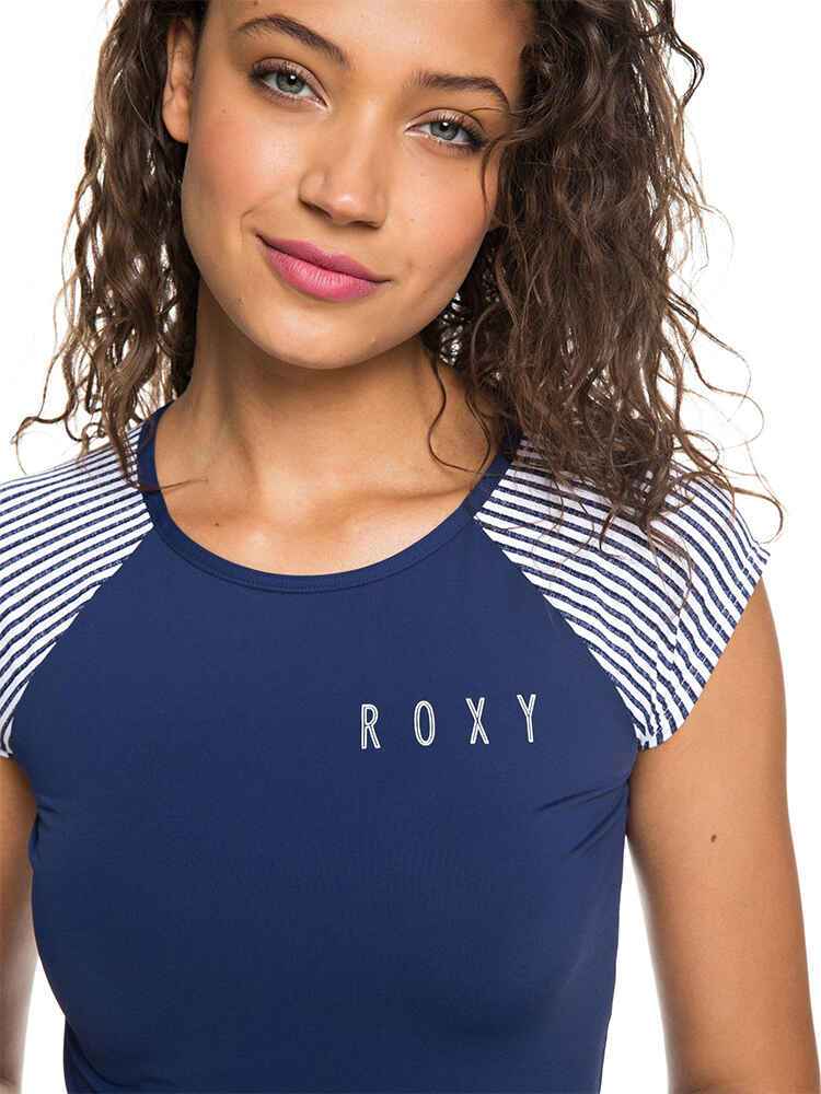 ROXY LADIES FASHION CAPSLEEVE LYCRA - MED BLUE/ CORNFIELD STRIPE