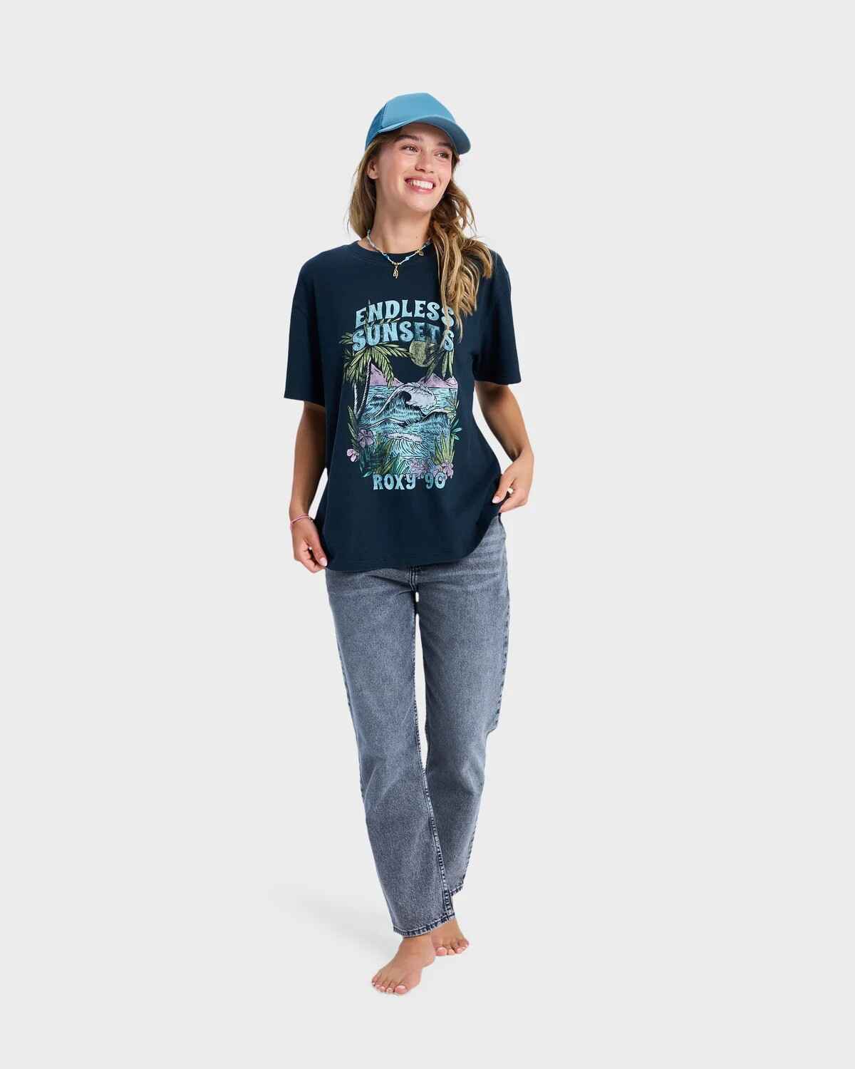 ROXY LADIES SUNNY O/SIZED STONE WASH TEE - BLACK