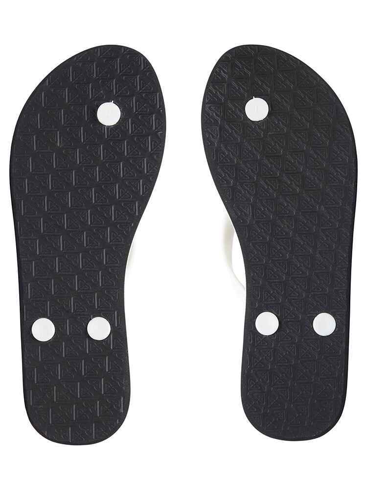 Women's flip-flops crafted from an upper in soft textured rubber with ROXY metal pin, featuring a footbed in textured rubber with graphic, and finished with an outsole in rubber.
