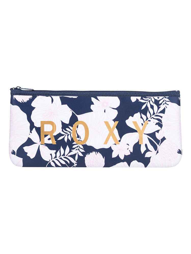 Pencil case for girls constructed in printed neoprene material, cut in one main zip-up compartment and complete with a ROXY screen print logo