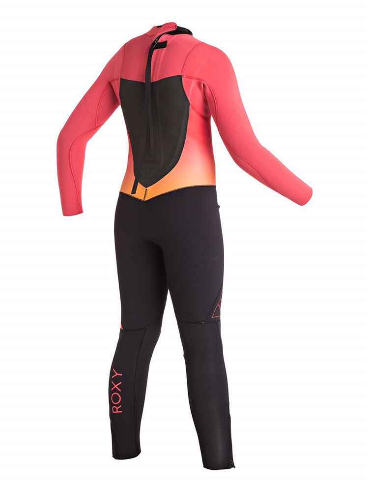 Back zip full wetsuit for girls 8-14 from ROXY. Features include: FN lite neoprene packed with air cells for the lightest of lightweight warmth, Thermal Smoothie Neoprene: Flexible and wind & water repellent to keep you warmer, Warmflight thermal lining - far infrared technology, Glued & blind stitched (GBS) seams that reduce sew throughs & water entry to keep you warmer, back zip entry system and YKK® #10 back zip.