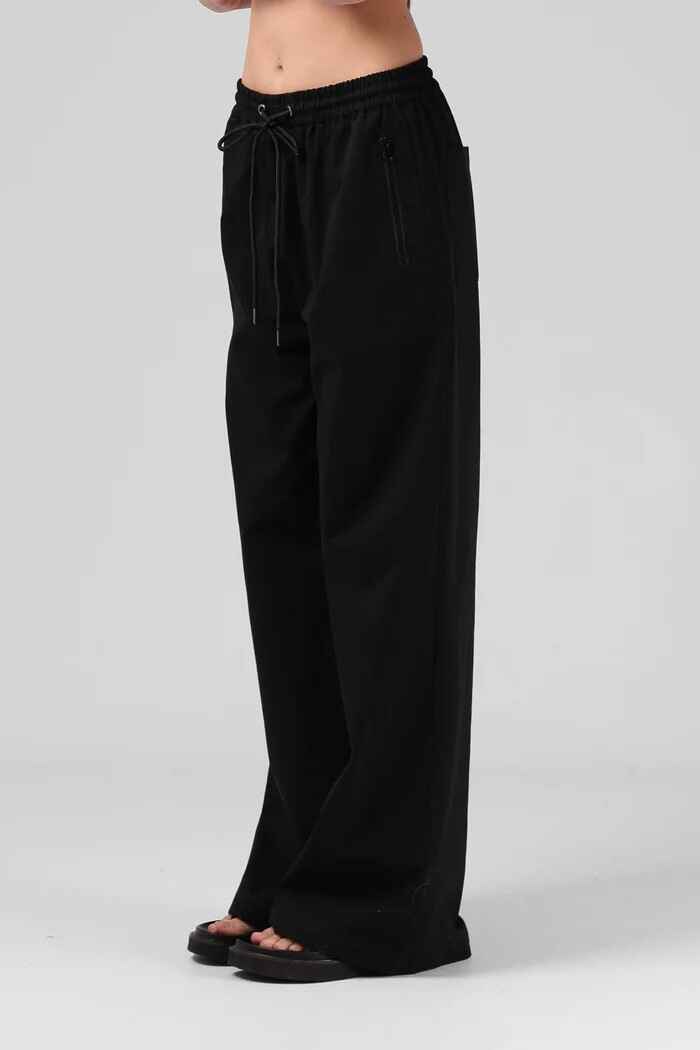 79.5% Cotton, 19% Polyester, 1.5% Spandex, Mid High Rise, Relaxed Fit, Wide Leg, Elasticated Waist, Double Drawcord Detailing, Zip Closure Side Hip Pockets, Patch Pockets on back
