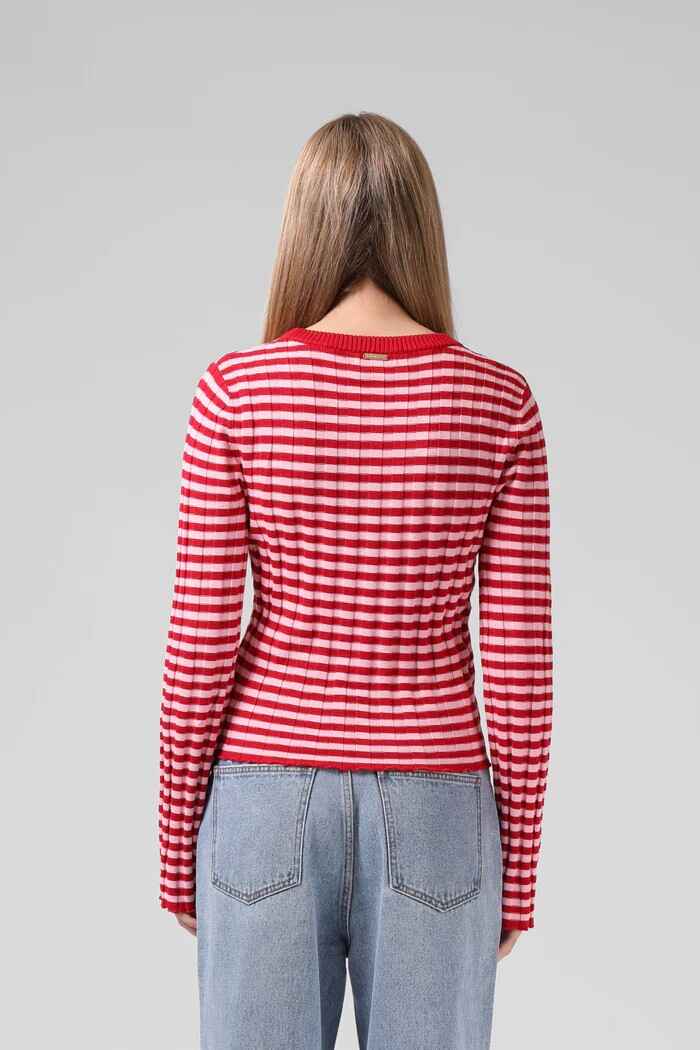 55% Acrylic / 45% Cotton, Machine Knitted 8x8 Rib, Slimline , Flared Lettuce Hem Long-sleeve silhouette this knit can be styled effortlessly as a layer piece