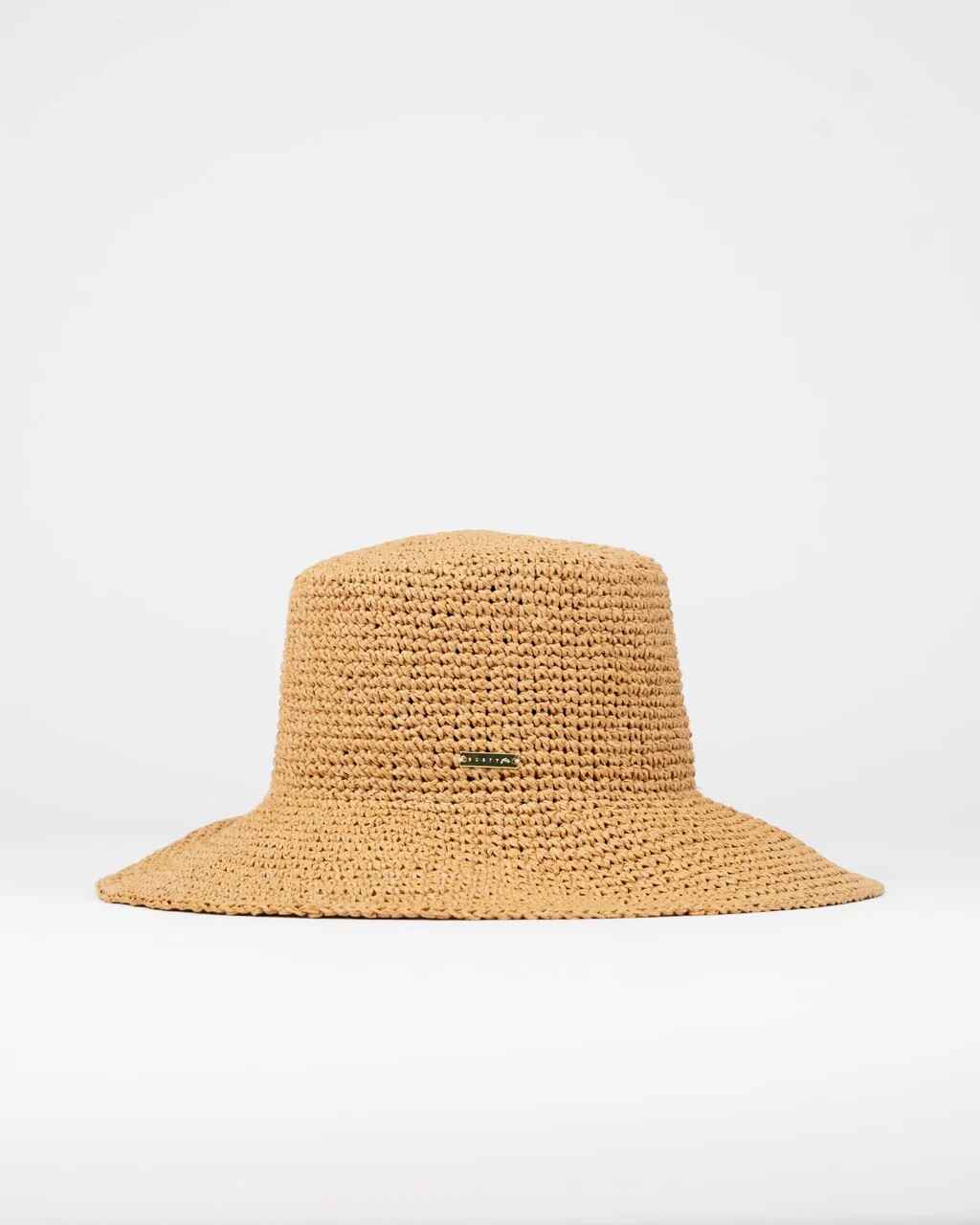 Bucket Hat With Rusty Metal Trim. Paper Straw