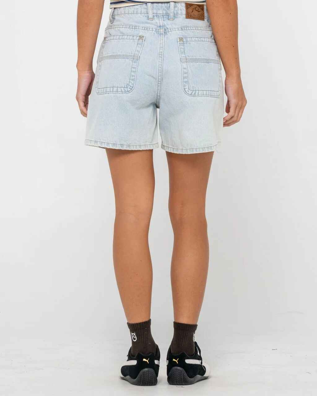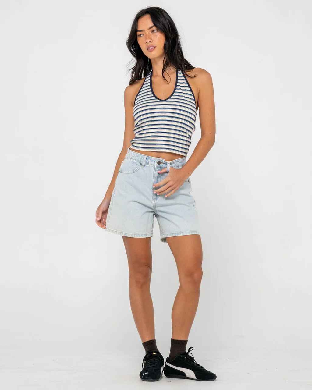 15" Outseam High Waisted Denim Short. 100% Cotton Indigo Denim