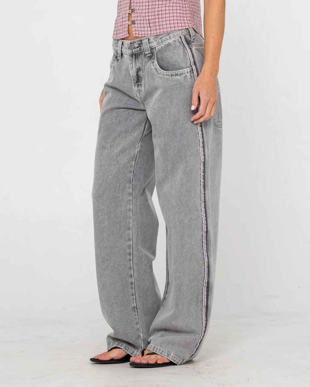 Low Rise Loose Fit Denim Pant With Contrast Details And Embroidery Features. 100% Cotton Indigo Denim