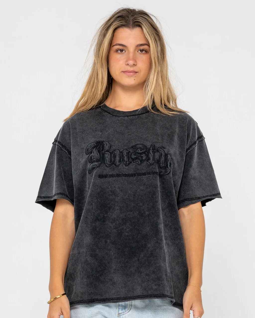Short Sleeve Oversize Washed Tee With Exposed Seams And Large Front Tonal Embroidery. 100% Cotton Jersey (After Wash)