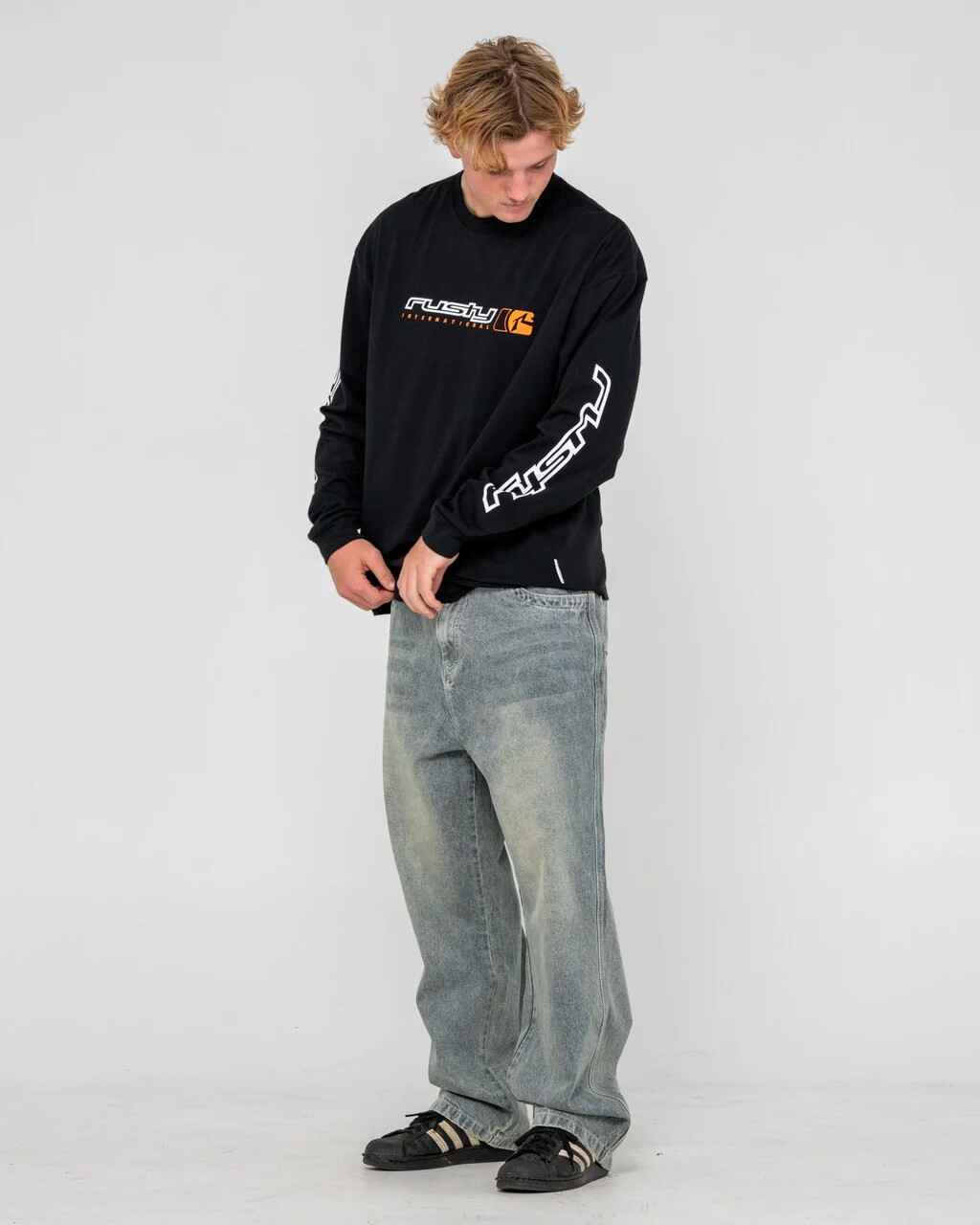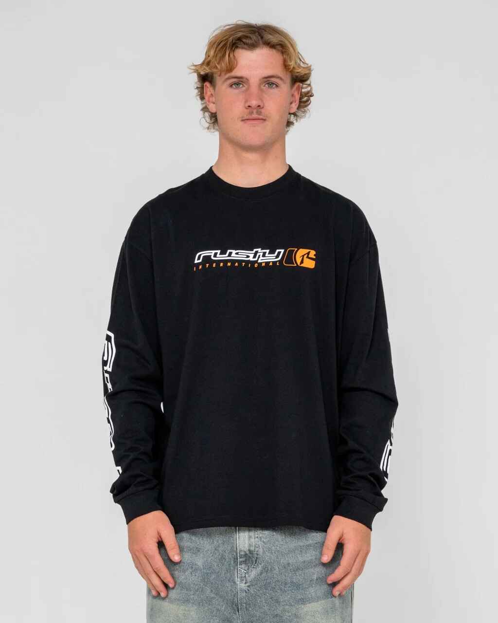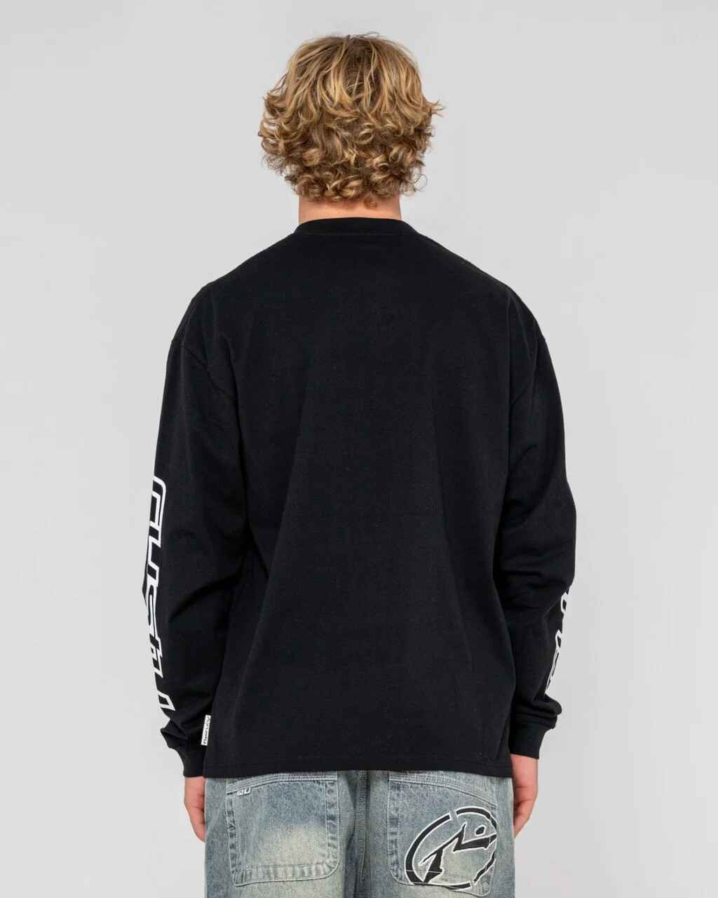 Oversized R2K Fit Long Sleeve Tee With Rusty Chest And Sleeve Prints. 100% Cotton Jersey (After Wash)