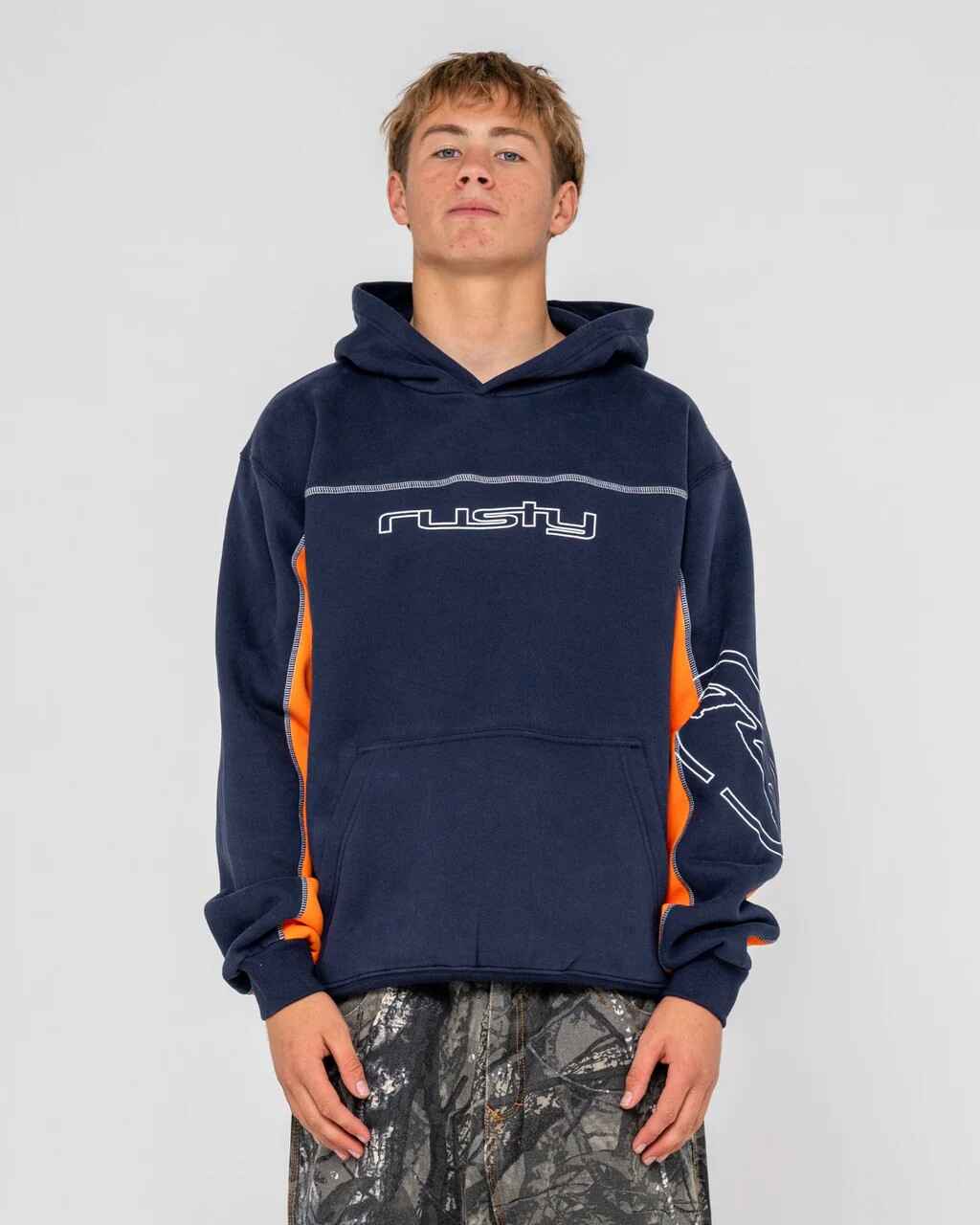 Relaxed R2K Fleece With Under Arm Panels - Contrast Stitch And Rusty Print. 58% Polyester / 42% Cotton Fleece (After Wash)