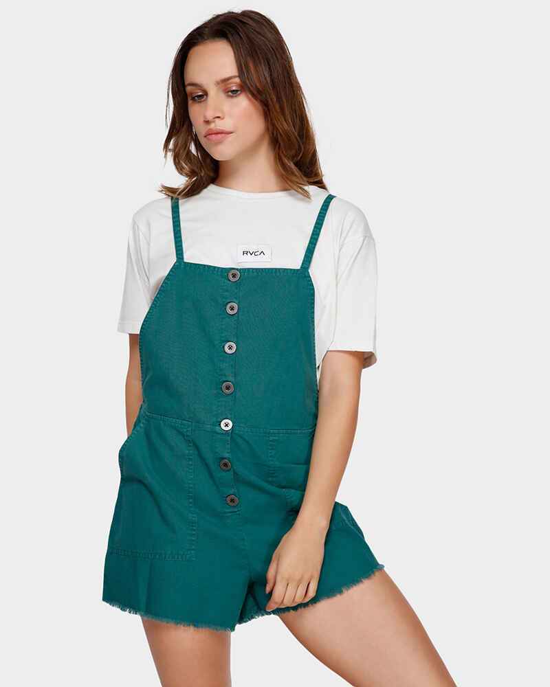 RVCA LADIES SHOUTOUT SHORTY OVERALLS - ALPINE