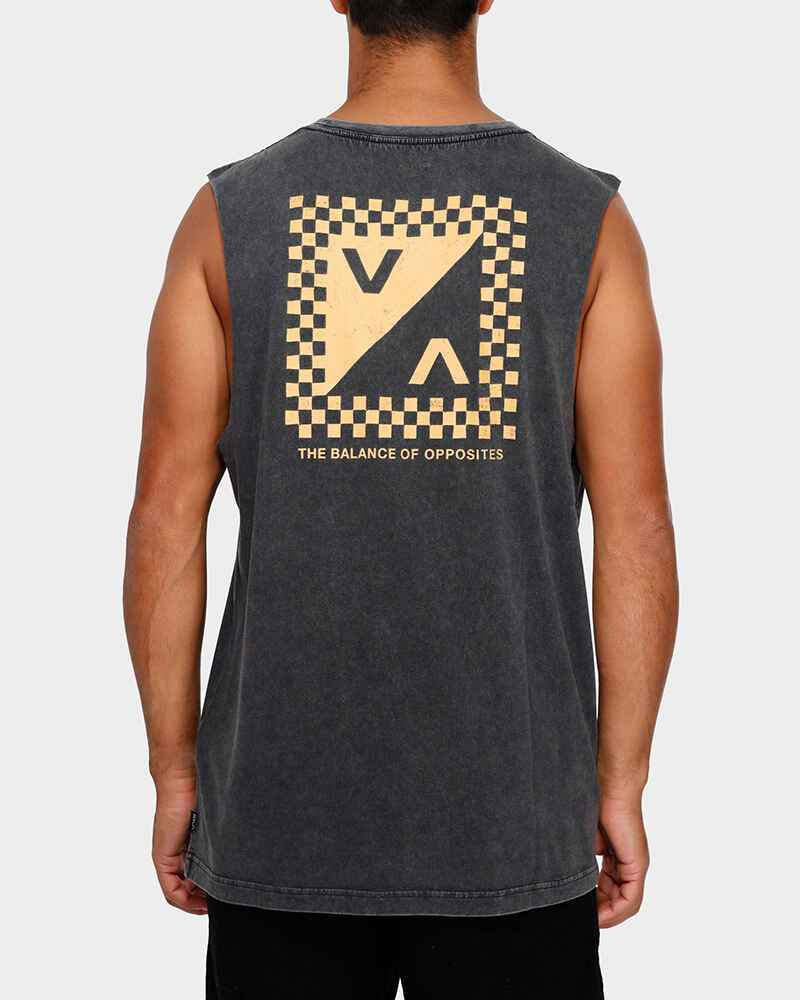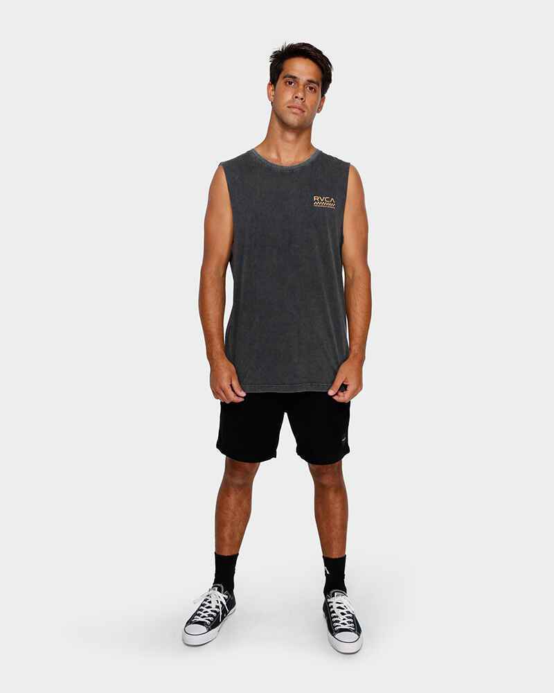 RVCA MENS CHECK MATE MUSCLE - BLACK ACID