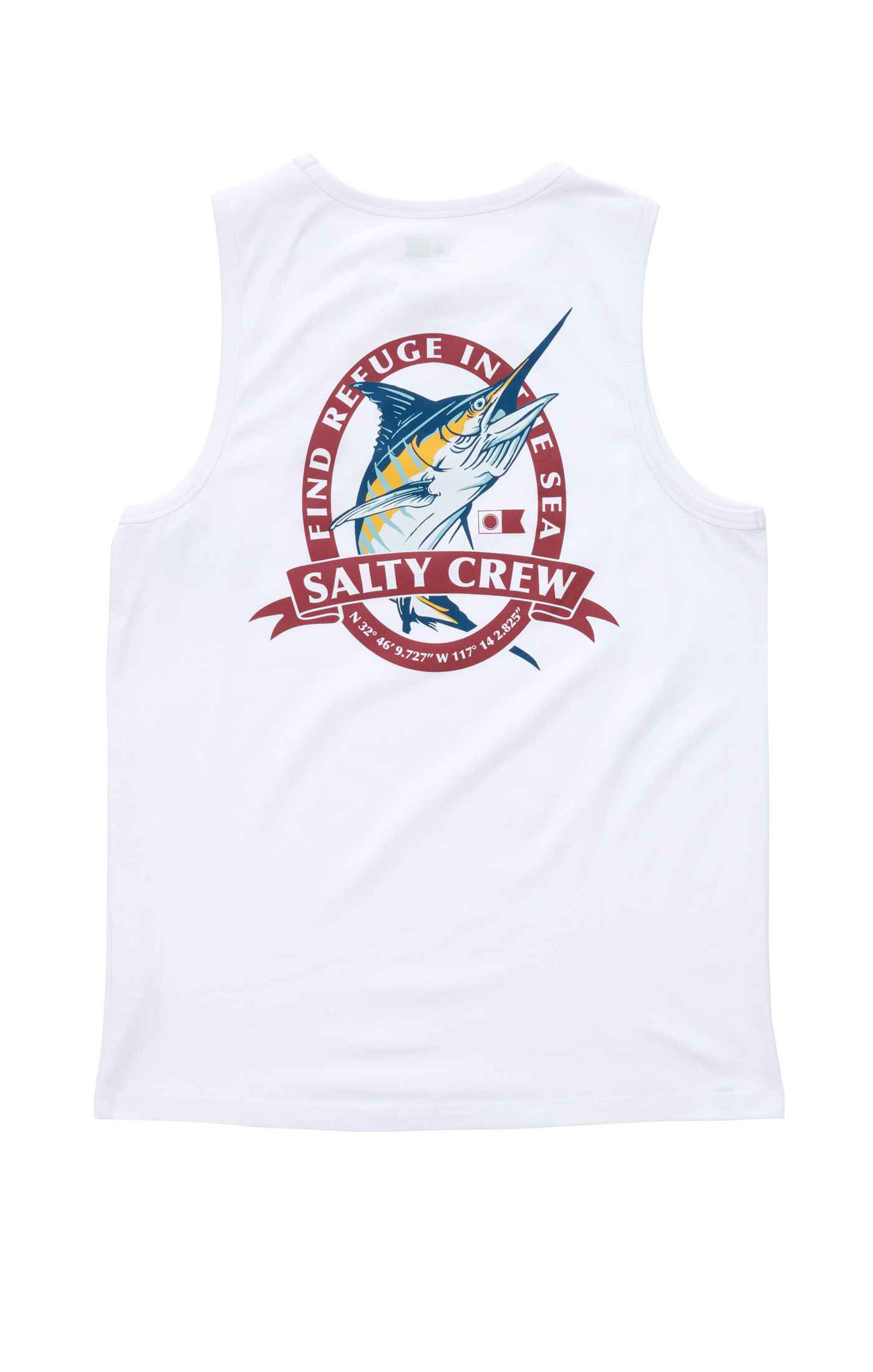 Bill Club Regular Tank in White is crafted from our signature textured cotton jersey, with a 180gsm weight. It features a Salty Crew clamp label at the body hem and is detailed with screen prints on both the front and back.