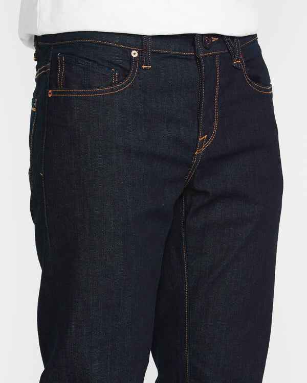 Blending modern style and classic comfort, these slim, stretch denim jeans boast eco-friendly production. Signature Volcom detailing meets a contemporary rinse finish for the ultimate in casual cool.